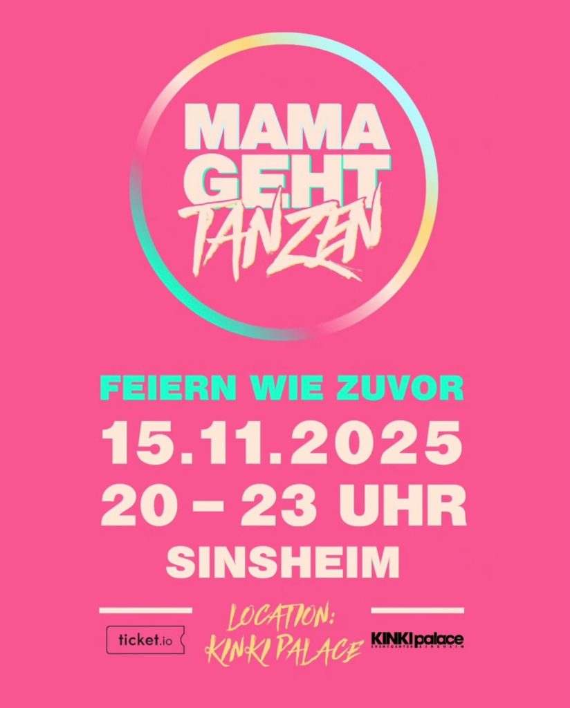 „MAMA GEHT TANZEN“ kommt endlich nach Sinsheim. Wir freuen uns schon sehr auf dieses besondere Event. Die Party für alle MAMAS, Ladies & Girls.